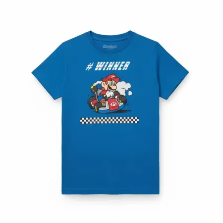 A fun, official Super Mario Kart graphic T-shirt for boys (7-8 years). This light grey (or sky blue based on image) crew neck tee features a bold Mario racing print and is made from a soft-washed, 100% cotton jersey for all-day comfort. It's machine washable, dryer safe, and perfect for casual everyday wear.