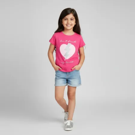 A vibrant fuchsia pink (Fuxia) T-shirt for girls from the popular Italian brand PIAZZA ITALIA. Made from 100% pure cotton for all-day comfort and featuring a trendy, casually elegant design. An authentic, excellent quality piece that offers unbeatable value for money.