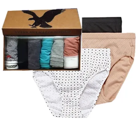 Discover effortless comfort and chic style with the American Eagle Women's Panty Set. This pack of six offers a perfect blend of elegance and everyday wearability, designed for every mood and occasion. Crafted from 100% Cotton (Aerie cotton) which is lightweight, breathable, and comfortable. The set includes assorted premium designs—from soft solids and trendy prints to feminine details like lace trims and bows. Available in a full range of sizes: S, M, L, XL, and XXL.