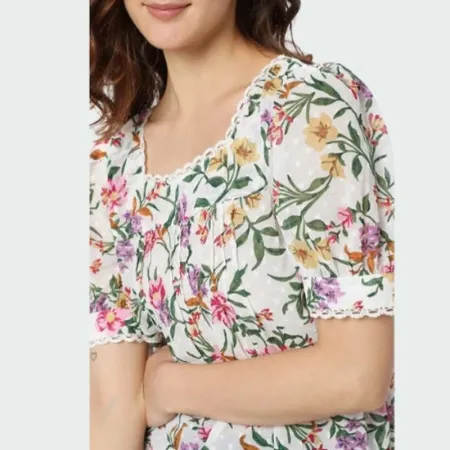 Introduce a fresh, feminine touch to your wardrobe with this charming Floral Printed Blouse from the imported TOYO collection. Perfect for spring and summer, this top features a beautiful all-over floral print set against a delicate white base fabric, complemented by a subtle micro-dot texture. The square neckline and puffed sleeves create a soft, romantic silhouette