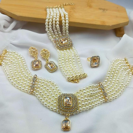 Jewelry Sets Simulated-Pearl Necklace Earrings