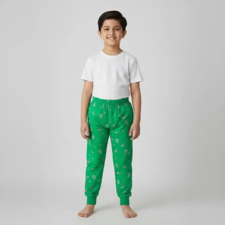Get your little one in a playful, lucky spirit with these vibrant green joggers! Made from a soft knit fabric, these bottoms feature a fun all-over pattern of shamrocks, rainbows, stars, and hearts. Designed for maximum comfort, they have an elasticized waist and comfy elasticized cuffs, making them perfect for playtime, lounging, or sleepwear.