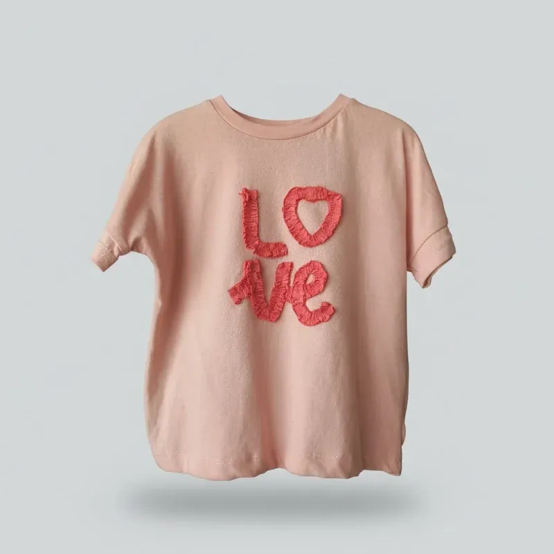 This adorable Girls' LOVE T-Shirt is designed for ultimate comfort and playful style. Crafted from soft, breathable 100% cotton jersey fabric, this tee promises hours of cosiness. The shirt features a classic Crew Neck and Short Sleeves, making it ideal for casual use and warm weather.