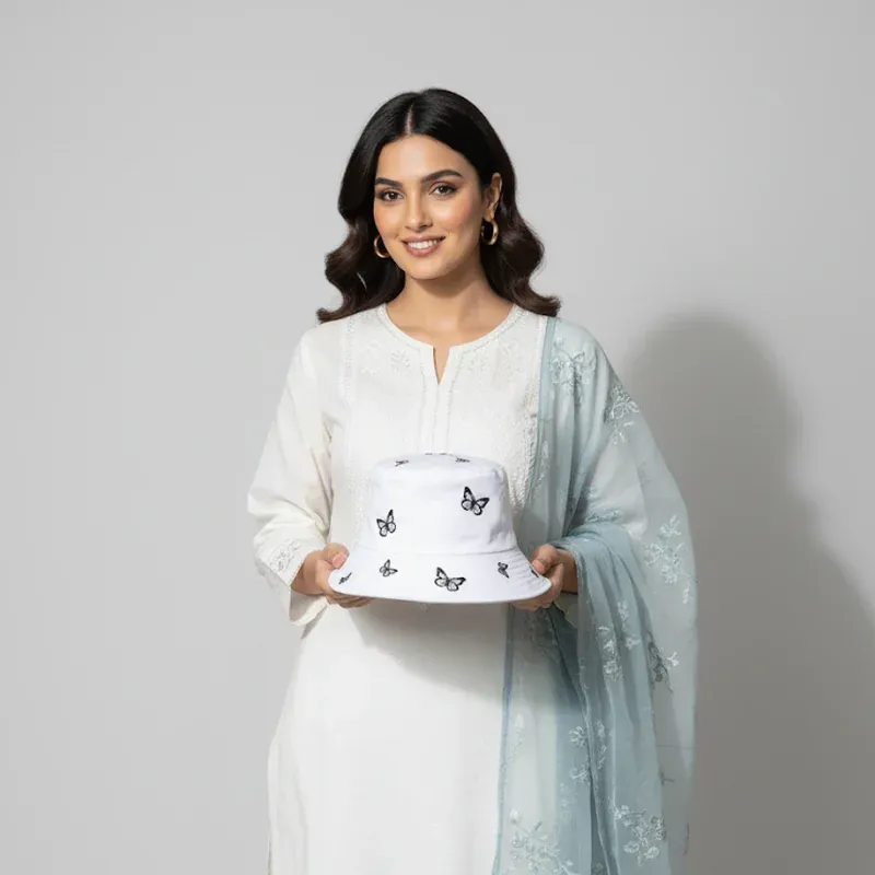 Step out in two styles with one hat! This fashion-forward, double-sided Bucket Hat features delicate Butterfly Embroidery and provides excellent Sun Protection. Made from comfortable cotton, it's the perfect casual accessory for women and men, ideal for the beach or everyday wear